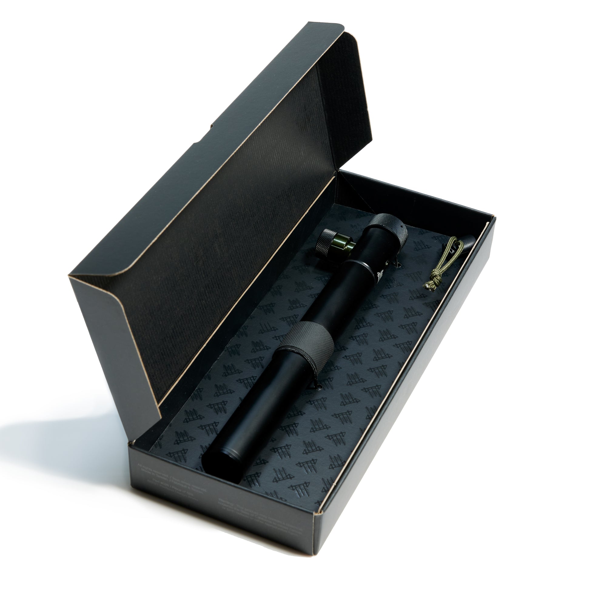 - スマートな、オール金属製のハンドポンプ兼CO2インフレーター