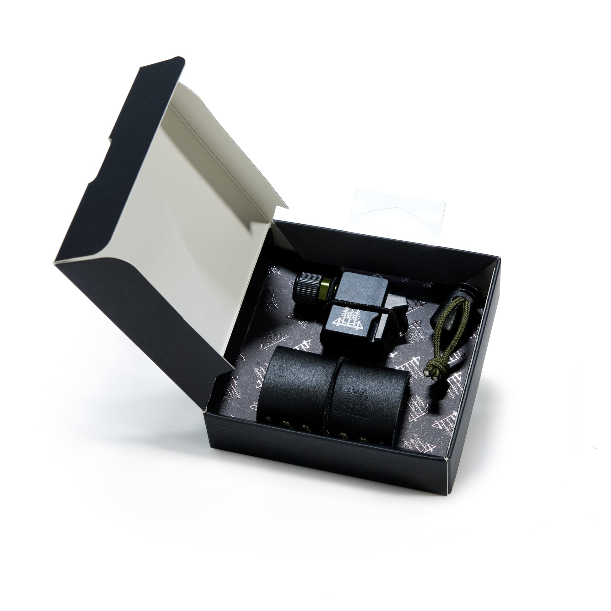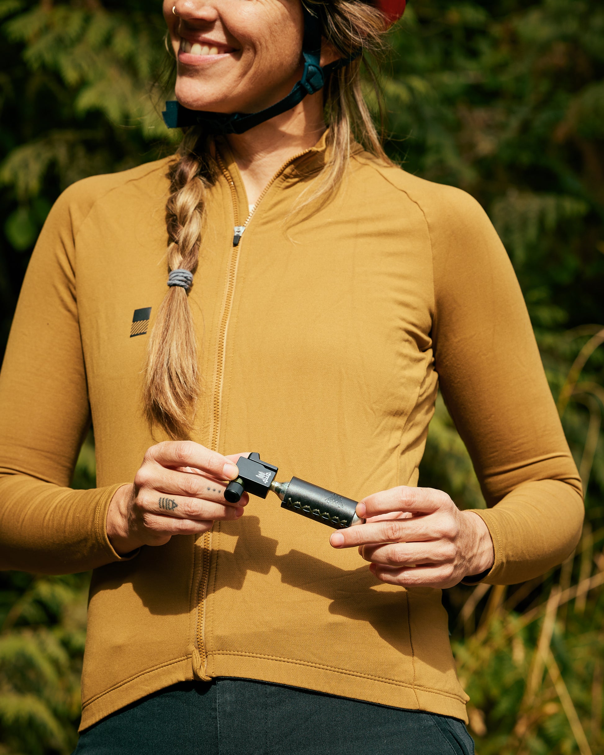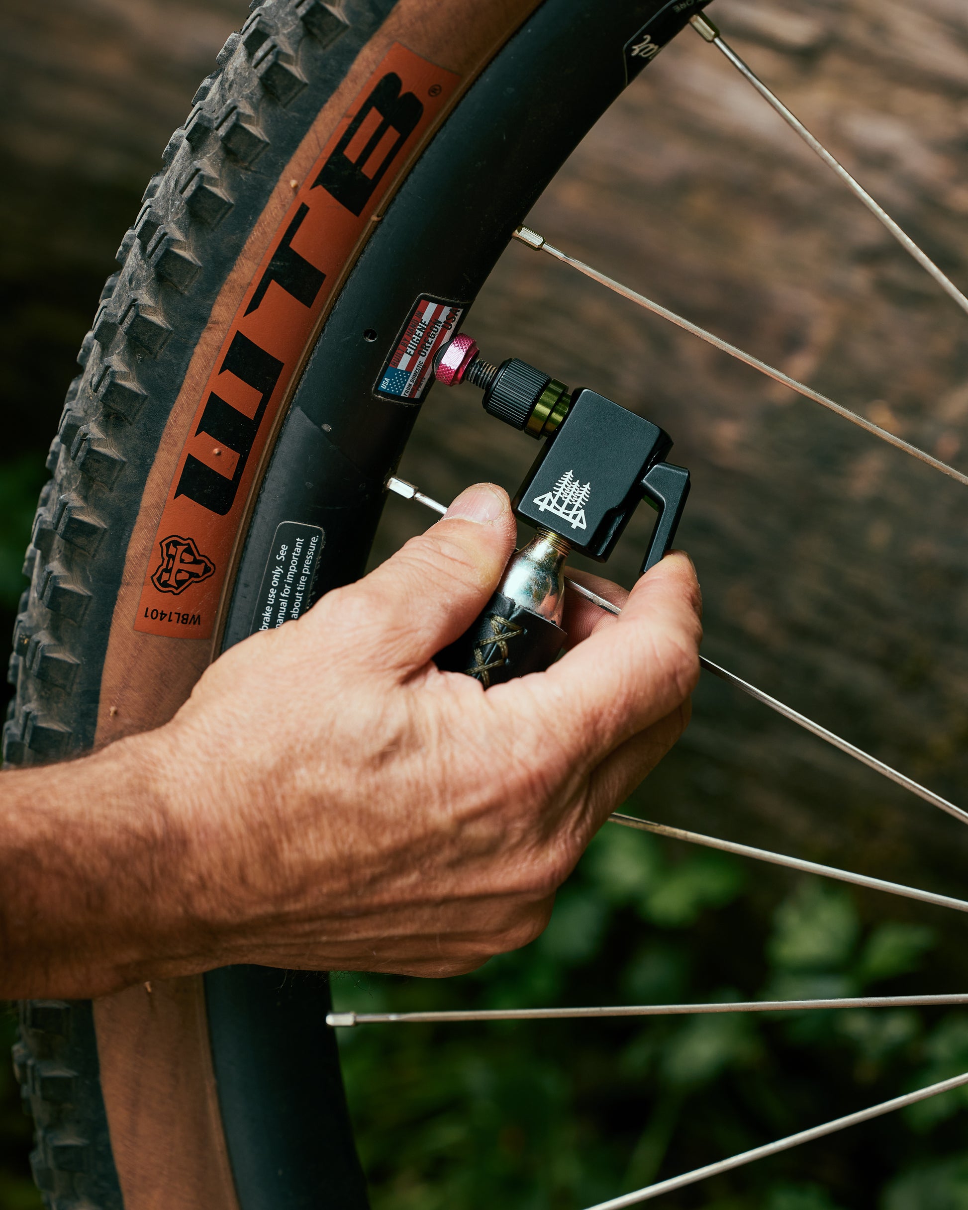クラウドキャップ CO2インフレーターはコンパクトで、全てが金属製のCO2インフレーターです。レバーによりCO2の流入量を繊細にコントロールできる革新的な機構を持ち、レバーを使わない時はコンパクトに本体にロックされる、ロープロファイルなデザインです。小さな保護バッグとレザー製のCO2カートリッジ用スリーブが付属します。