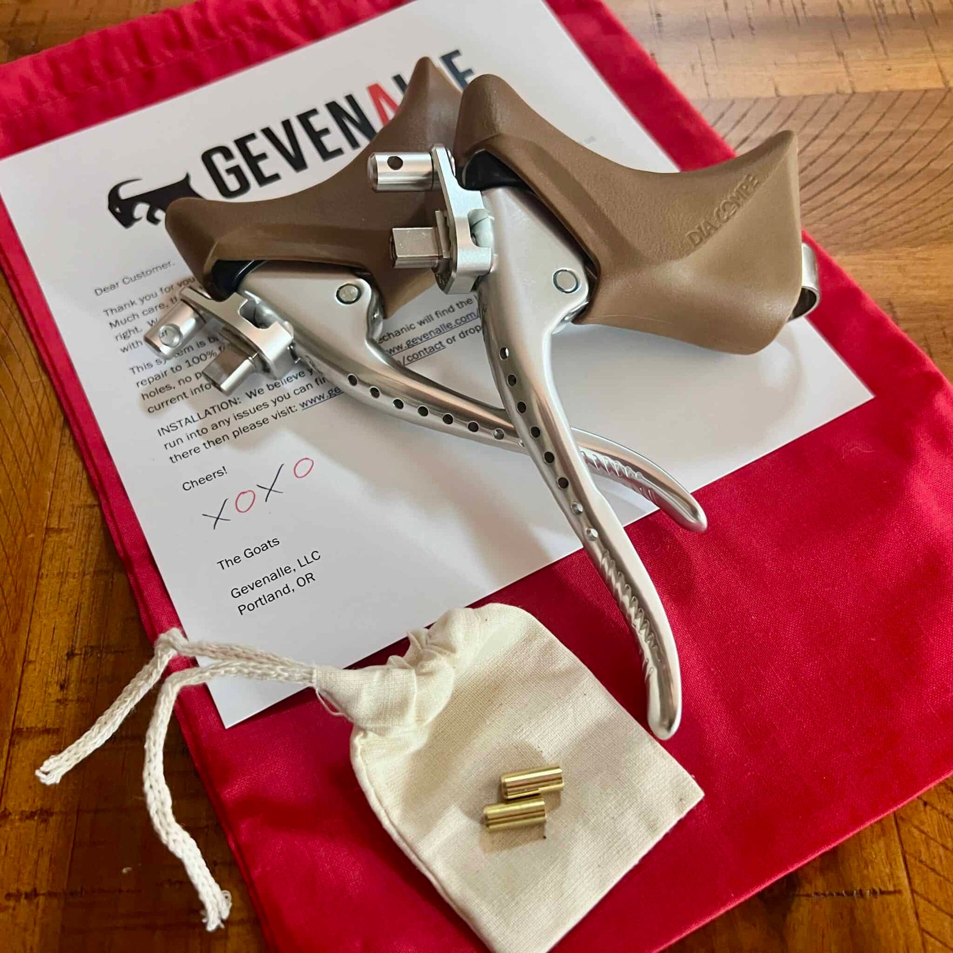 Dia-Compe GC08をカスタマイズしてブレーキレバーにシフトレバー台座を搭載したGCエディションが登場しました。これは限定モデルとして限定数が販売されたのですが、人気のため復活させたものです。ブレーキレバー単体のため、ご自身でシフトレバーを用意していただくことになります。GCエディションにはよりモダンなMTB用のシフターは取り付けできません。GXシリーズをご使用ください。