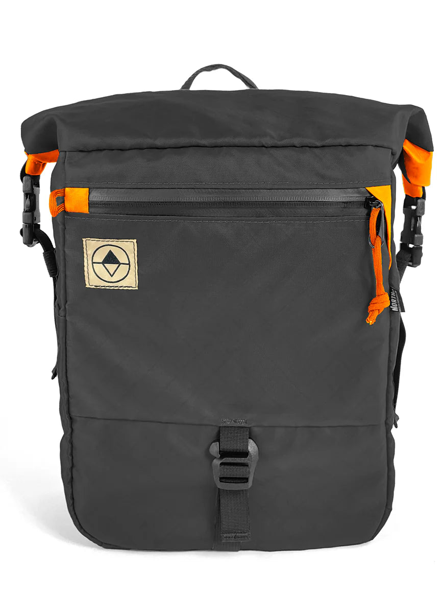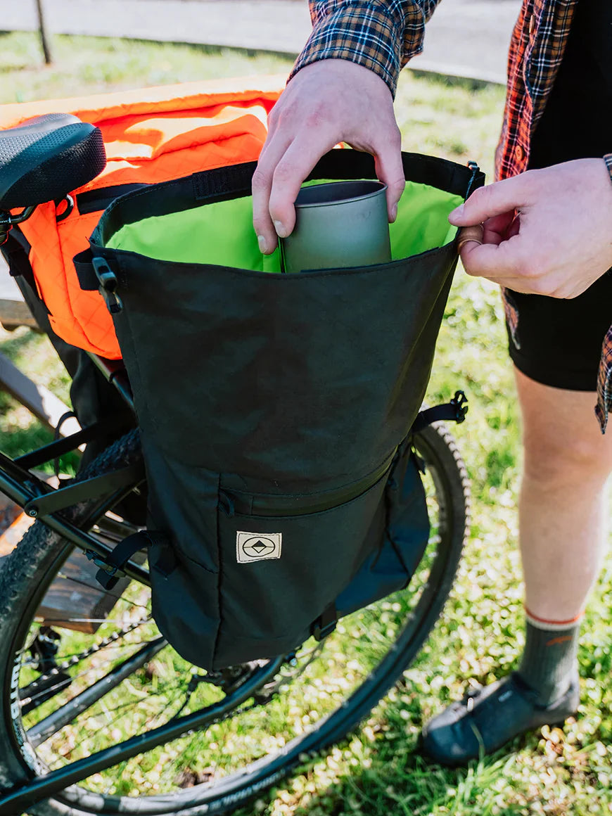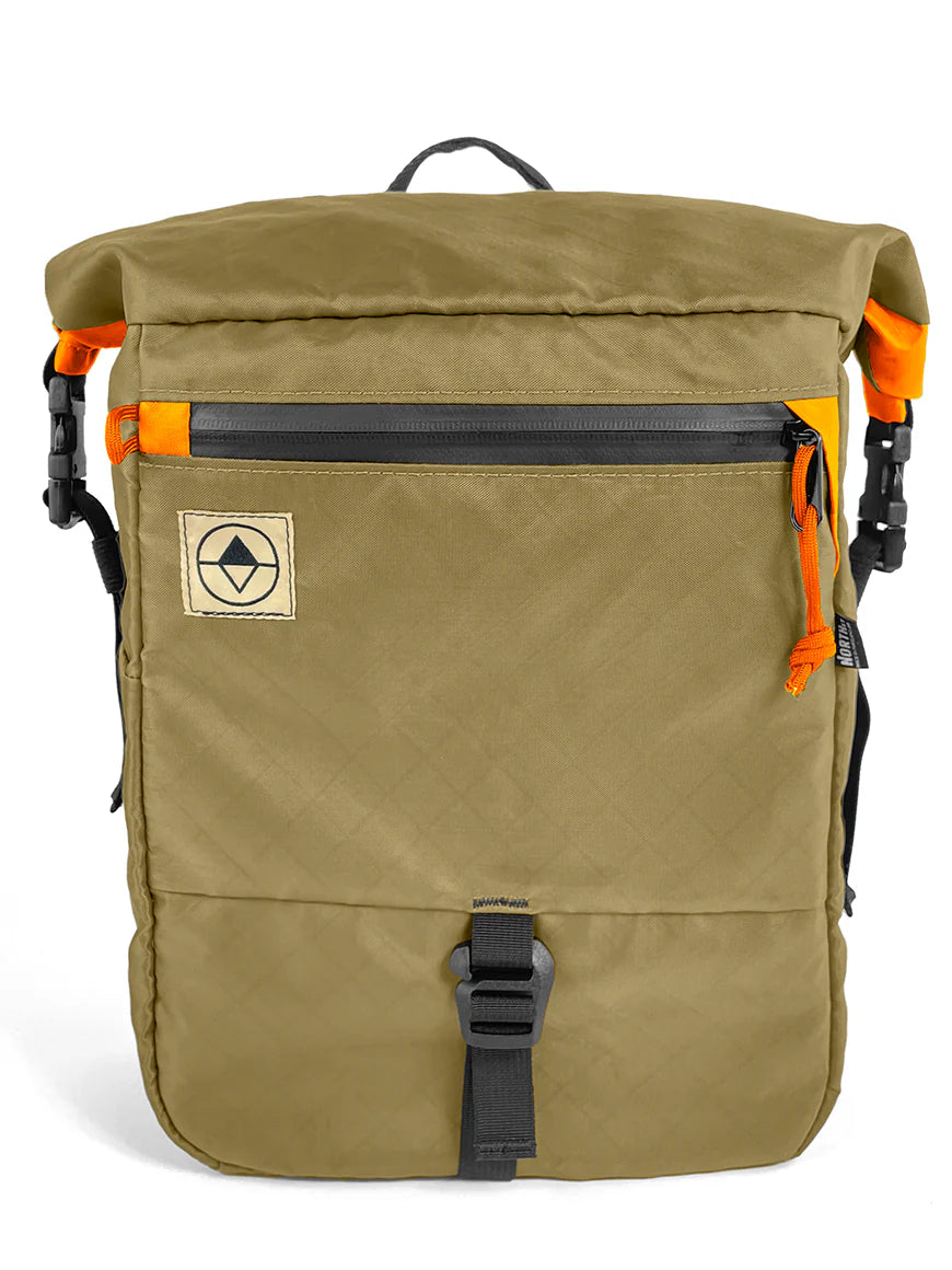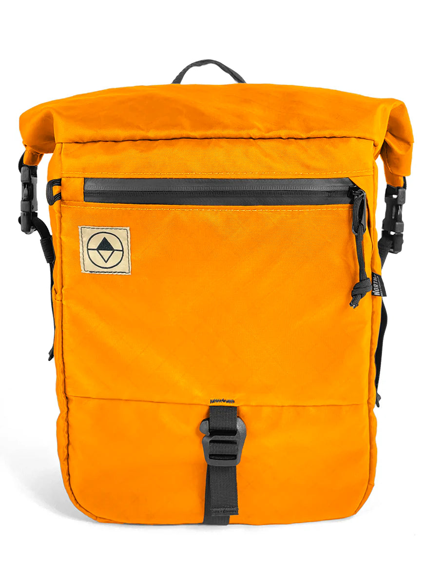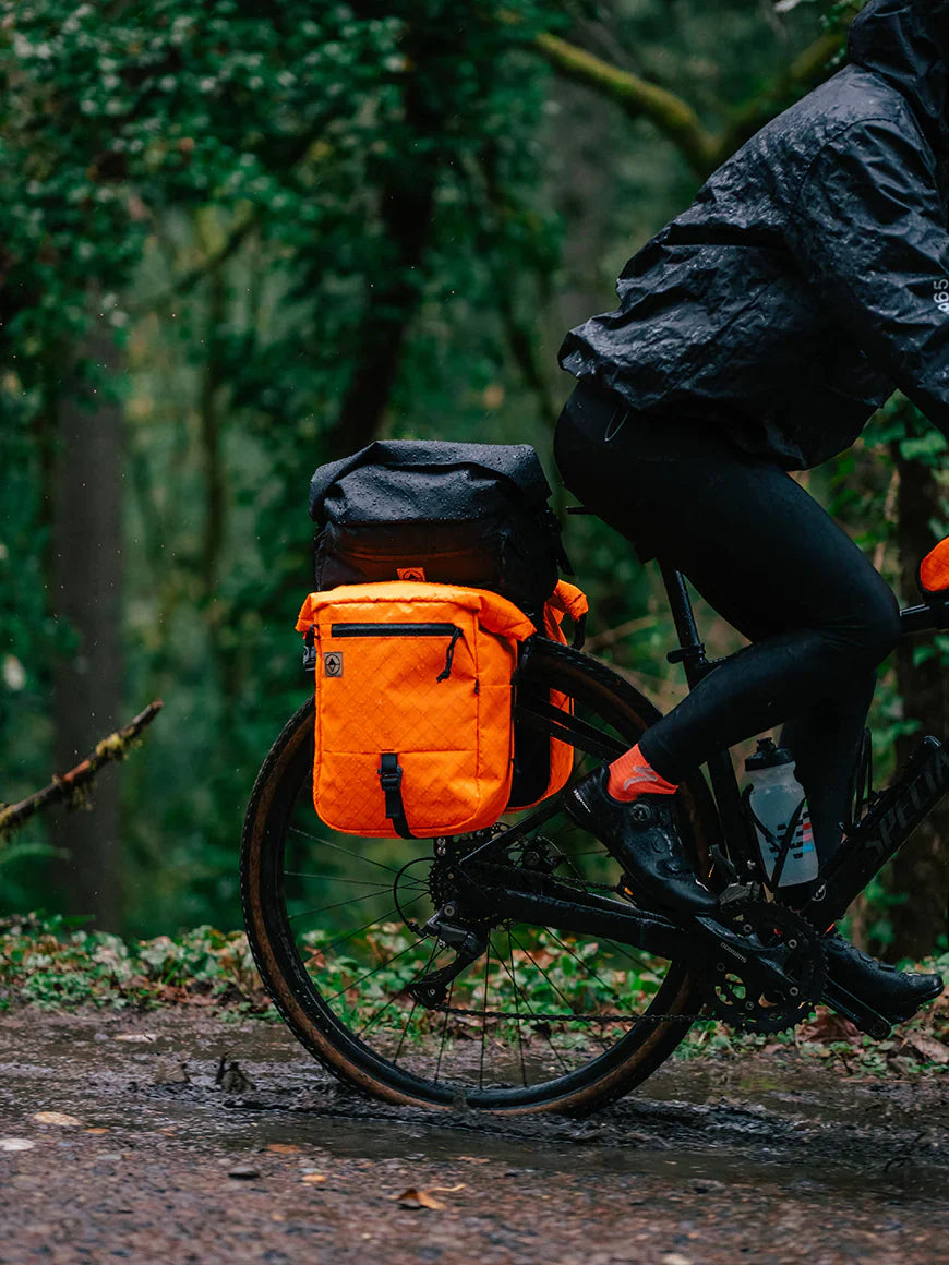 防水セイルクロスの一層構造で作られたシンプルで洗練されたマイクロパニアは、ミニマリストのバイクパッキングやシングルトラックの冒険に最適な外部ジッパーポケットを備えています。