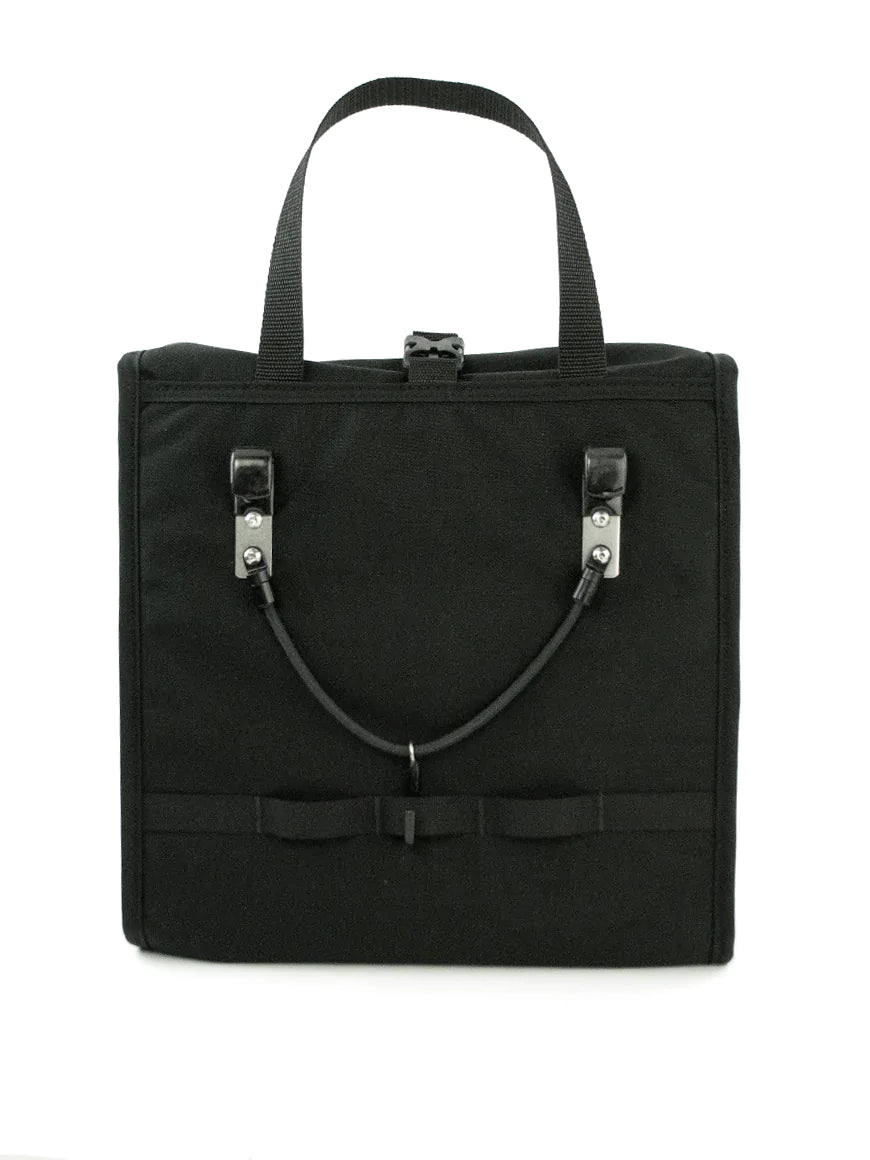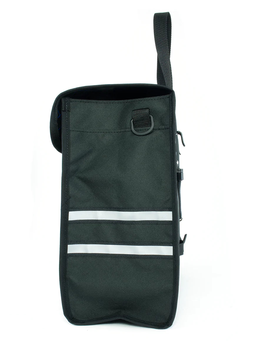 素早く簡単にアクセスできるフラップトップクロージャーと、暗くなってからの視認性を確保するためのデュアルリフレクターバンドを備えています。クラシックなフックとバンジーの取り付けシステムにより、パニアをラックに簡単に固定することができます。サイドのDリングにオプションのショルダーストラップを取り付けたり、デュアルキャリングハンドルを使用してトートバッグとして使用することも可能です。