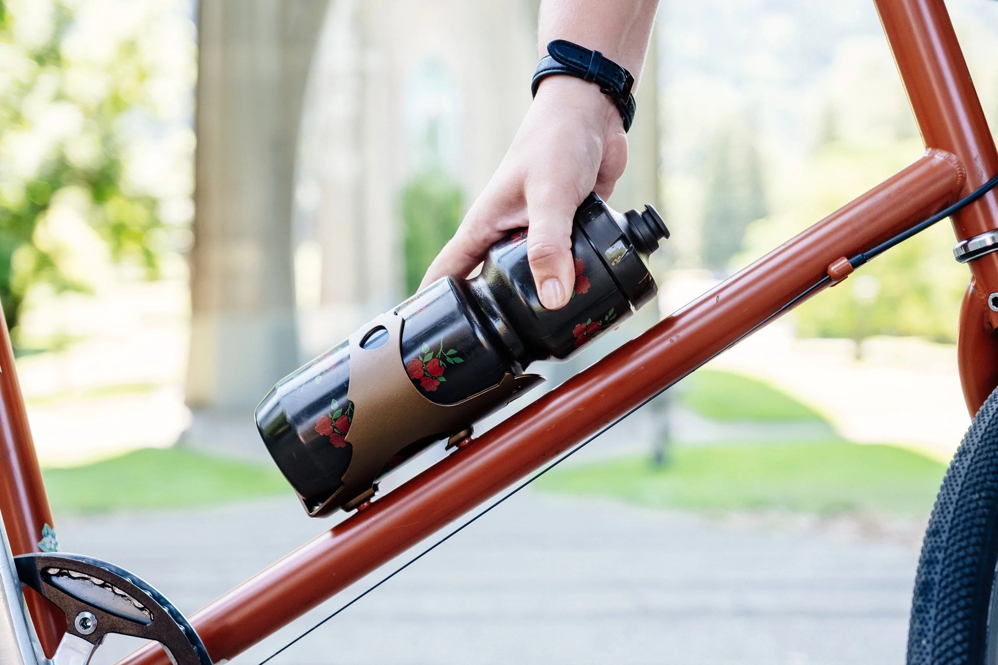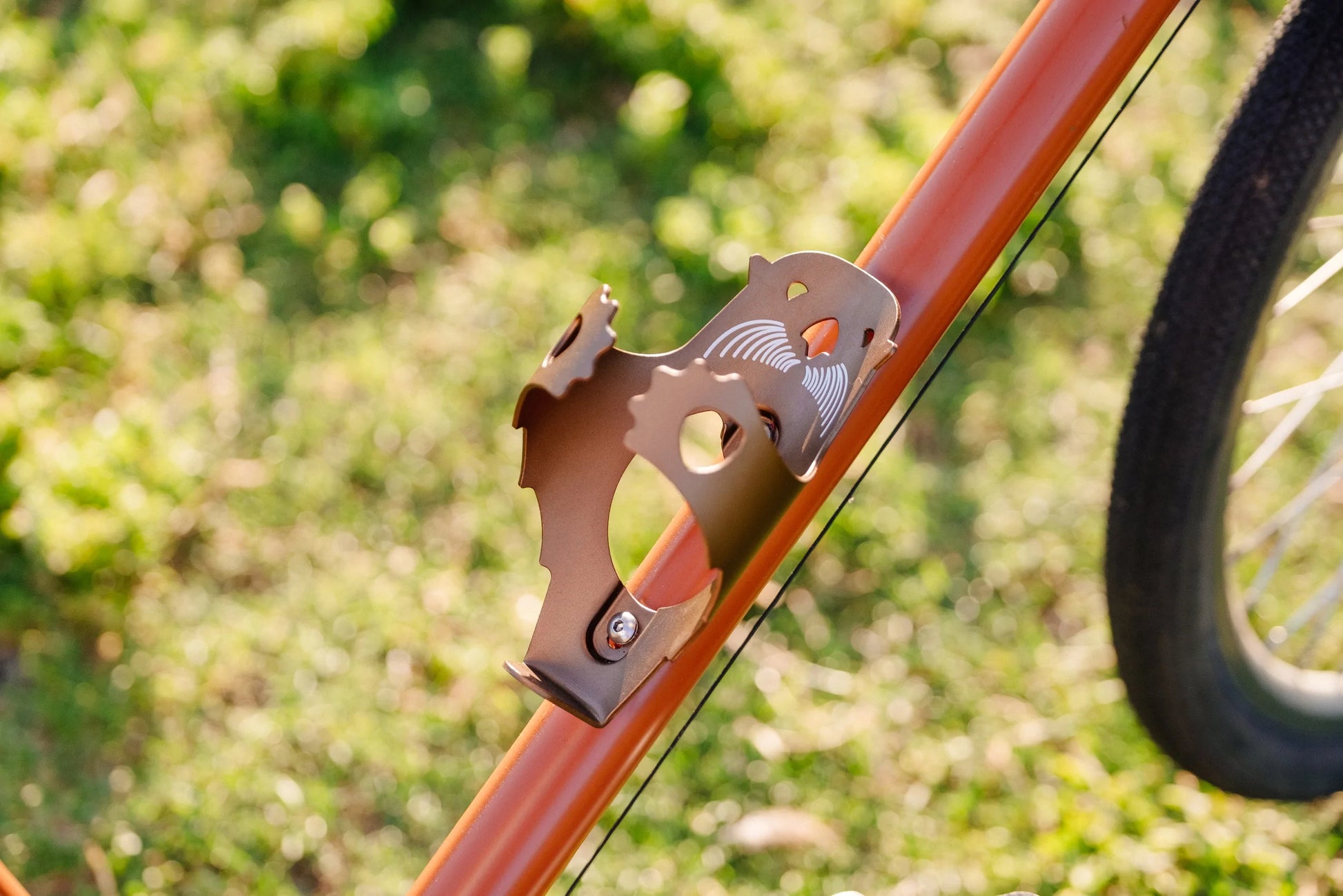 オッター・ケージは1枚の5052アルミ合金シートから作られています。ラッコの腕部分は子ラッコを背後から抱く母ラッコのようにウォーター・ボトルを優しく、確実に保持します。PDWはオッター・ケージの利益から10%をOregon Wildのような野生動物保護団体に寄付します。