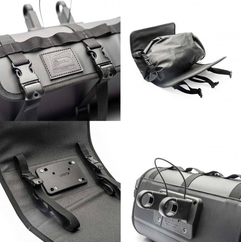 ギアベリーは確実に、見た目が良く、そして荷物へのアクセスが簡単な方法を提供してくれます。頑丈なハンドルバーマウントはドイツでデザイン、製造されたリクセン&カウルによるもので、22.0-31.8mm径のライザーバー、フラットバー、フレアドロップバーなどにも対応します。内側に配置された2本のストラップは荷物を固定し、3本の外側のストラップはギアベリーを見た目よく、タイトに締め上げることができます。全てのバックルはカムロック仕様となっており、ストラップが緩むことはありません。ギアベリーにフィットするダブルエンドの防水ドライバッグが付属します。外側にはデイジーチェーンが用意されているのでお好みで色々なものを取付可能です。頑丈ながらも柔軟性を持つギアベリーは簡単に綺麗にできるターポリン製で、泥で汚れるような冒険にも踏み出すことができます。