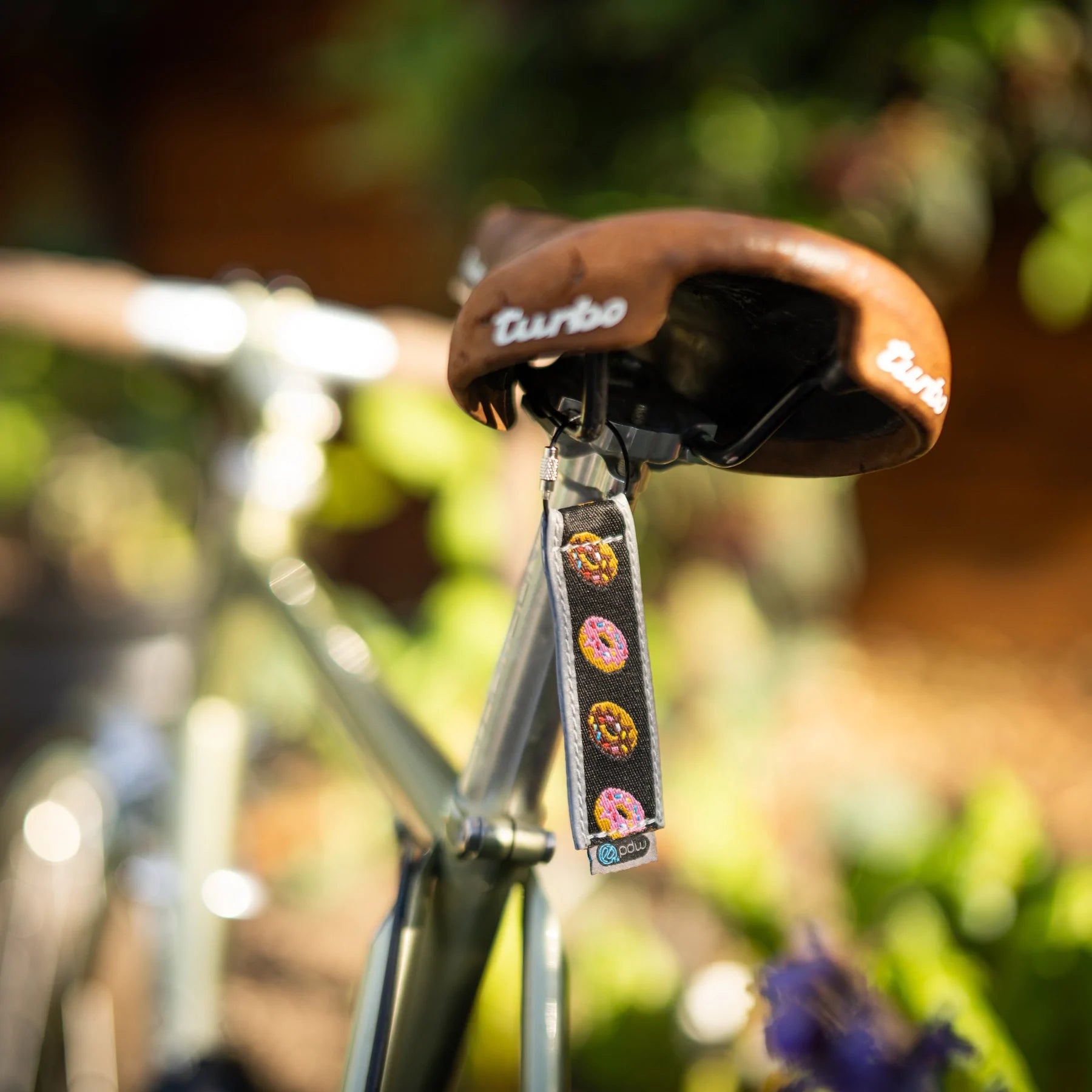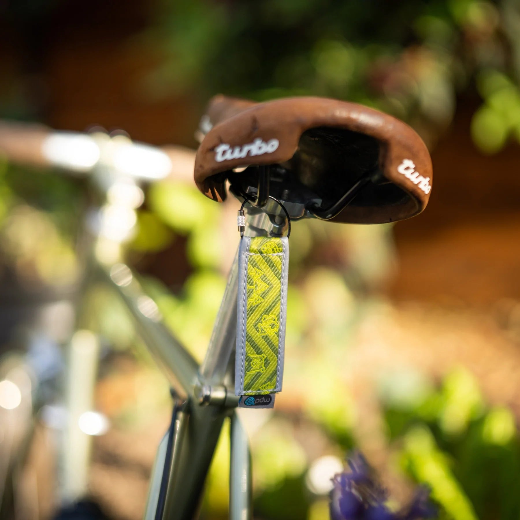 サドルチャームはライドにちょっとした派手さと視認性、そして個性をプラスします。素材にバーテープ、頑丈なスレッドロックループ、反射率の高い3M™トリムを使用しています。サドルチャームはサドルのレールやブルックスのサドルバッグループなど、自転車やバッグのどこにでも取り付けて安全性と楽しさをプラスします。