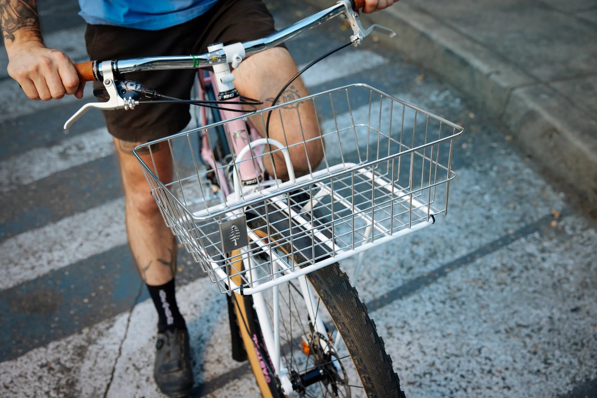 都会からトレイルまで、ティンバー・トゥー・タウンギアは考え抜かれてデザインされており、自転車による生活をより豊かにします。ジグザグバスケットは、クラシックなバスケットをシンプルで堅牢にアレンジしたものです。頑丈な304ステンレス鋼で作られており、長い冒険のためのギアをたっぷりと詰め込んだり、スーパーマーケットまでの短い移動のためにも適しています。フロントまたはリアラックにタイラップで取り付ける設計です。