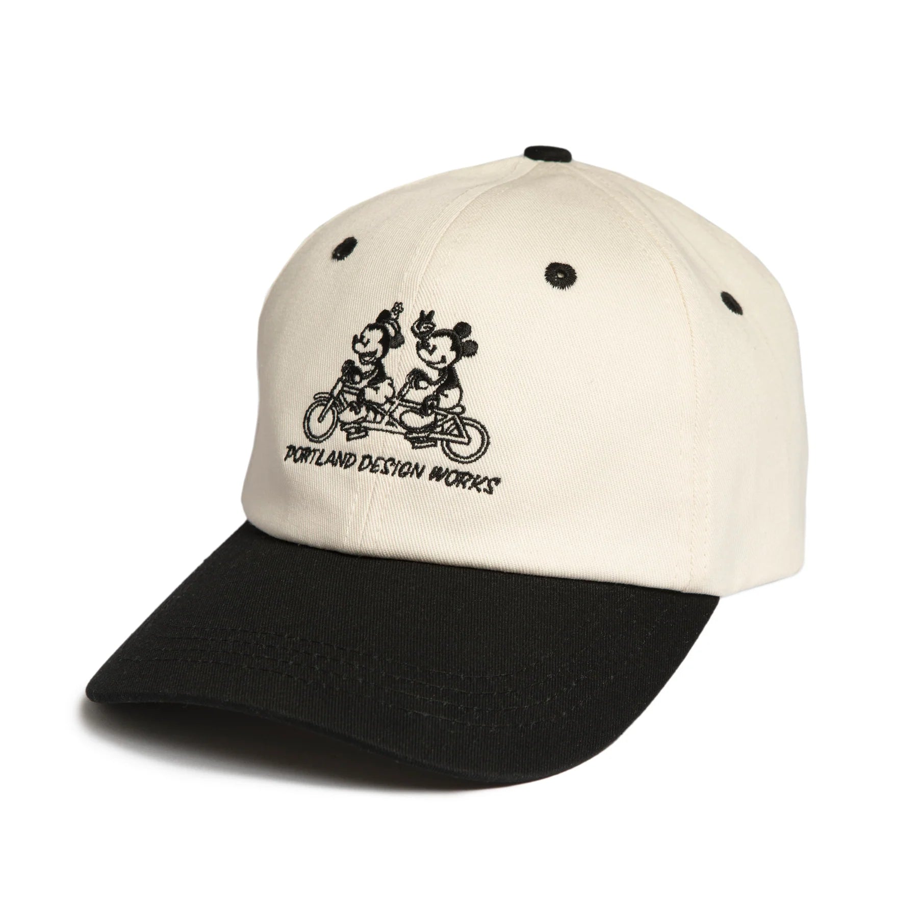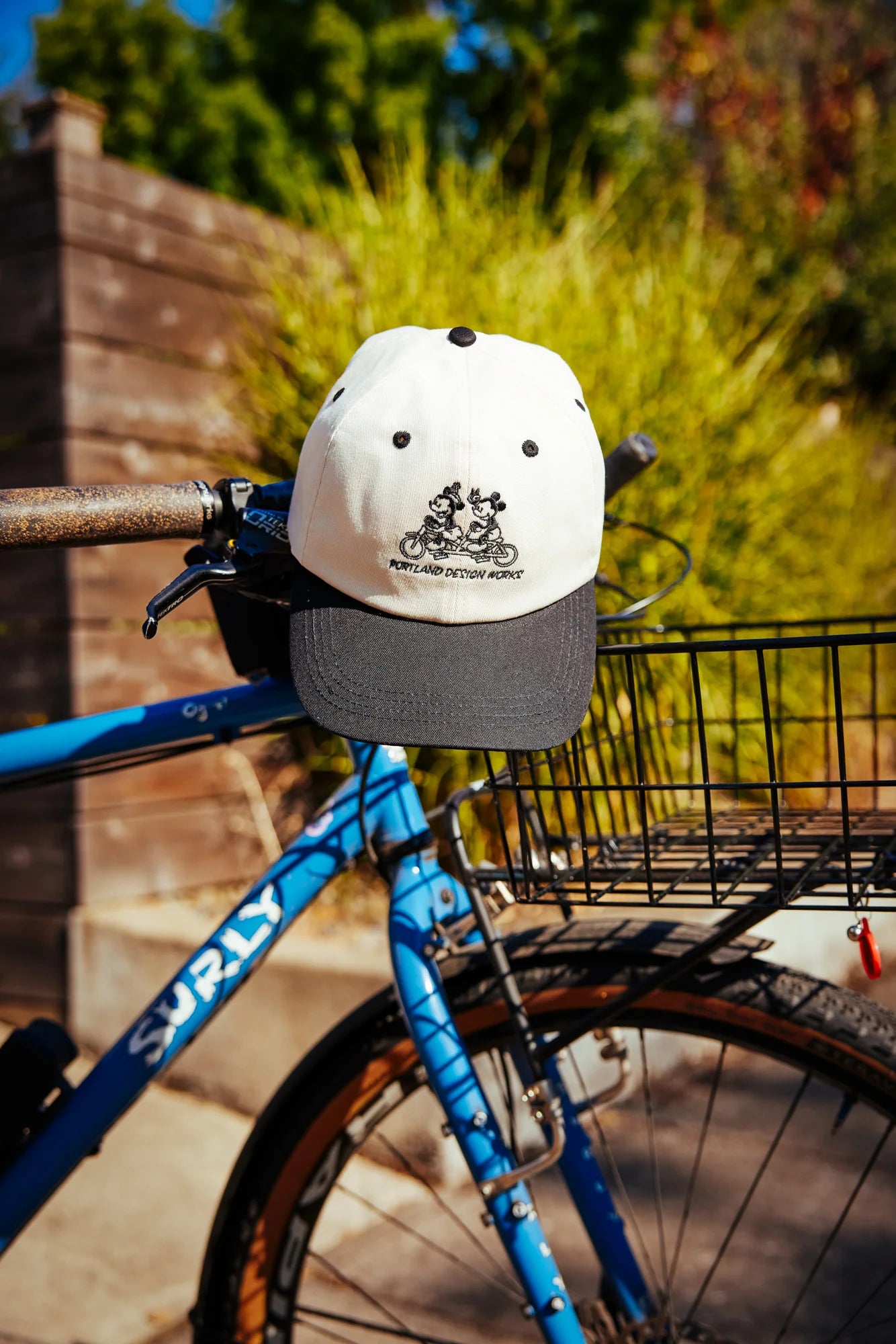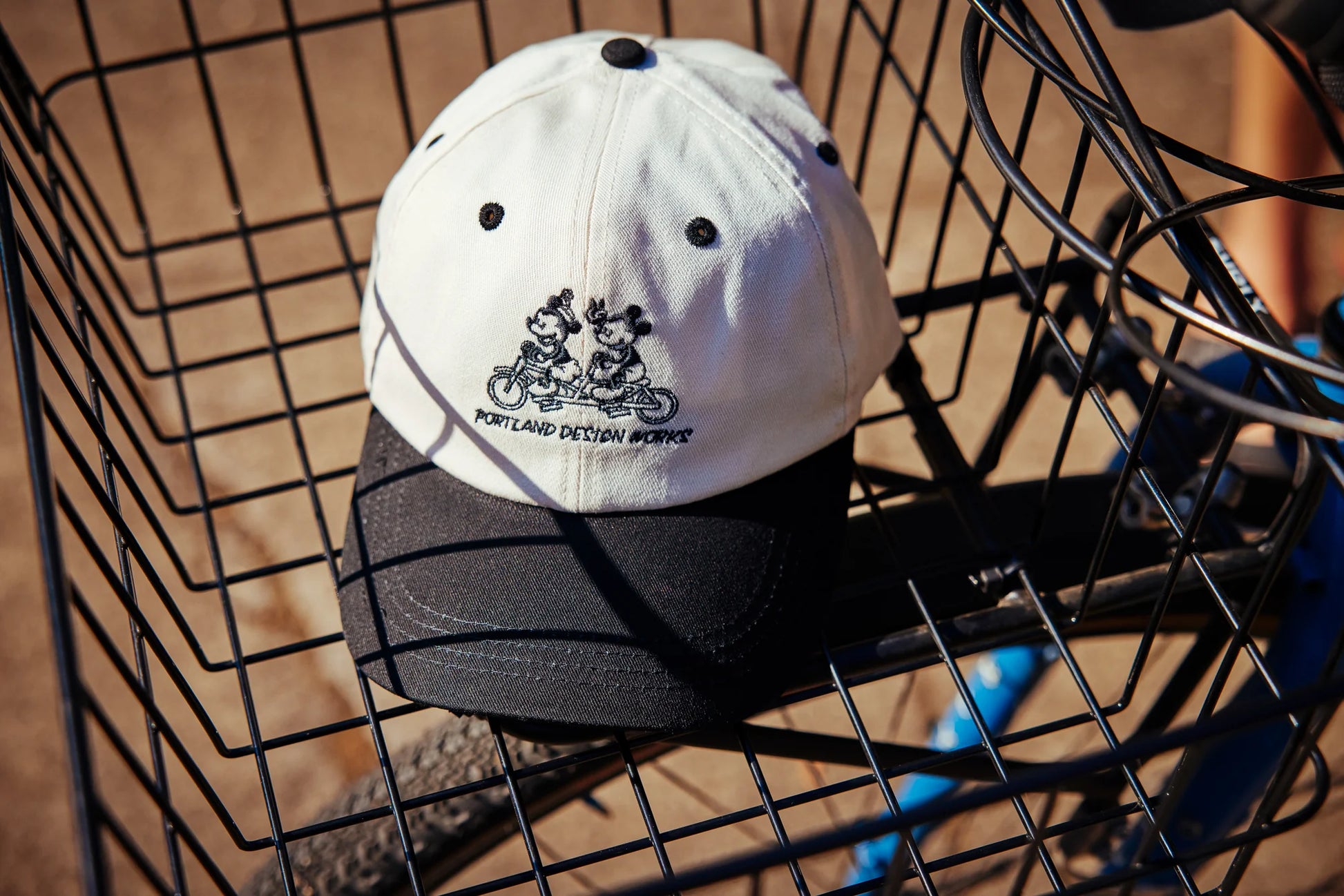PDWから最新のキャップには、世界的に有名なタトゥーアーティストであるジェイク・トン氏による、陽気なタンデムマウスの刺繍デザインが施されています。ナチュラル/ブラックのシンプルなツートーンカラー、素晴らしいフィット感、そして最も重要な点として、ヘルメットで乱れた髪を隠せます。
