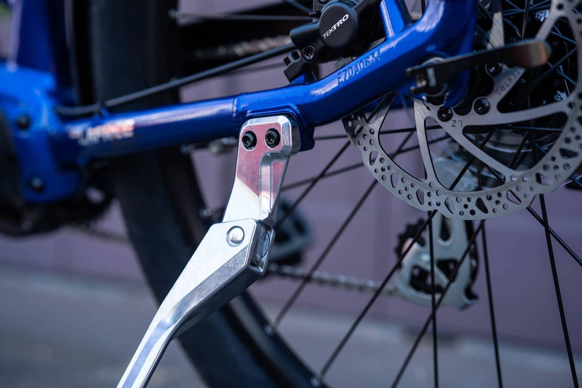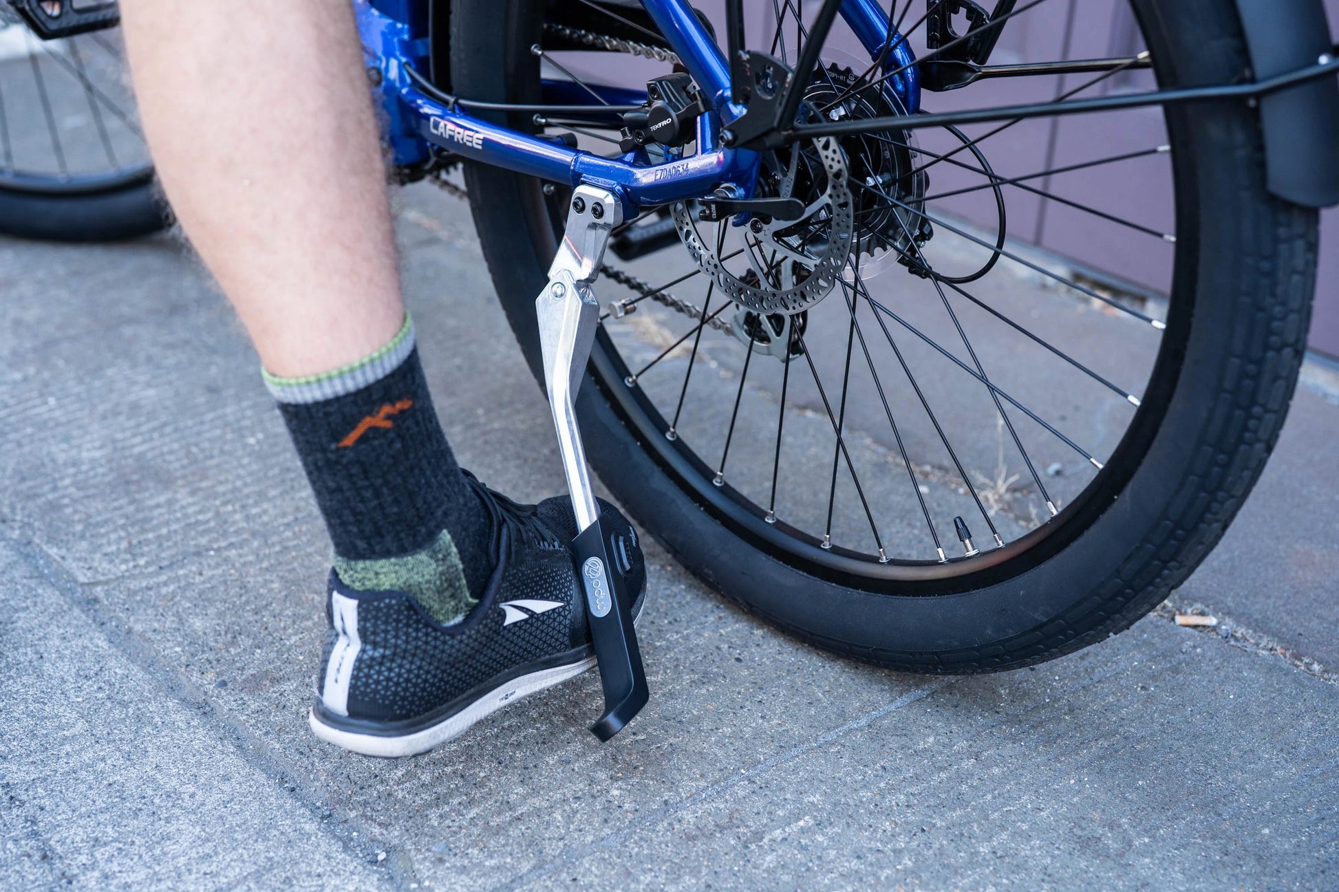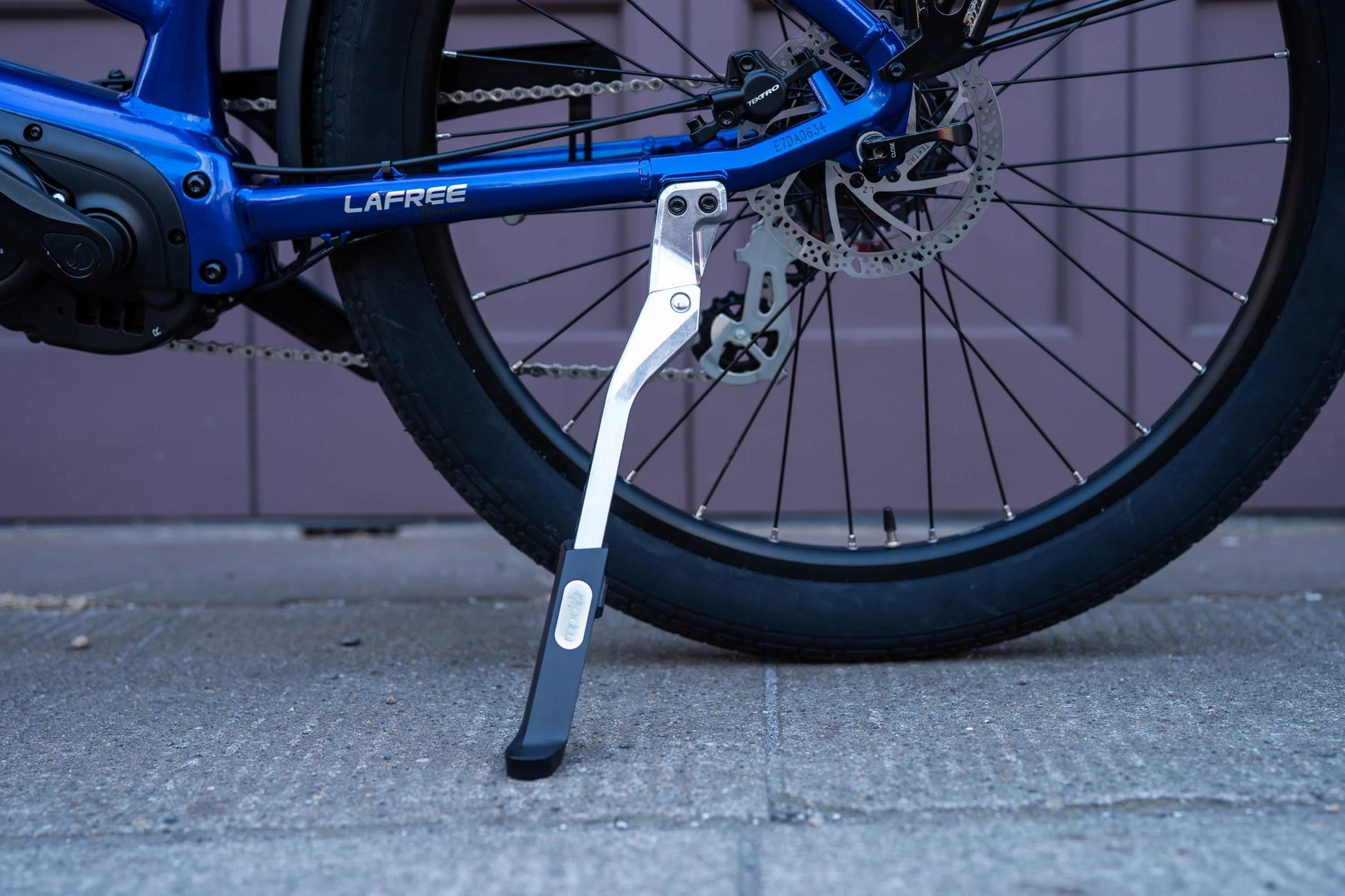 パワースタンスはeBike、カーゴバイク、ツーリングバイクやコミューターのためにデザインされた、頑丈なキックスタンドです。取付は簡単で、長さはボタン押すことにより簡単に変更可能で、不整地などに停める時にも調整ができます。