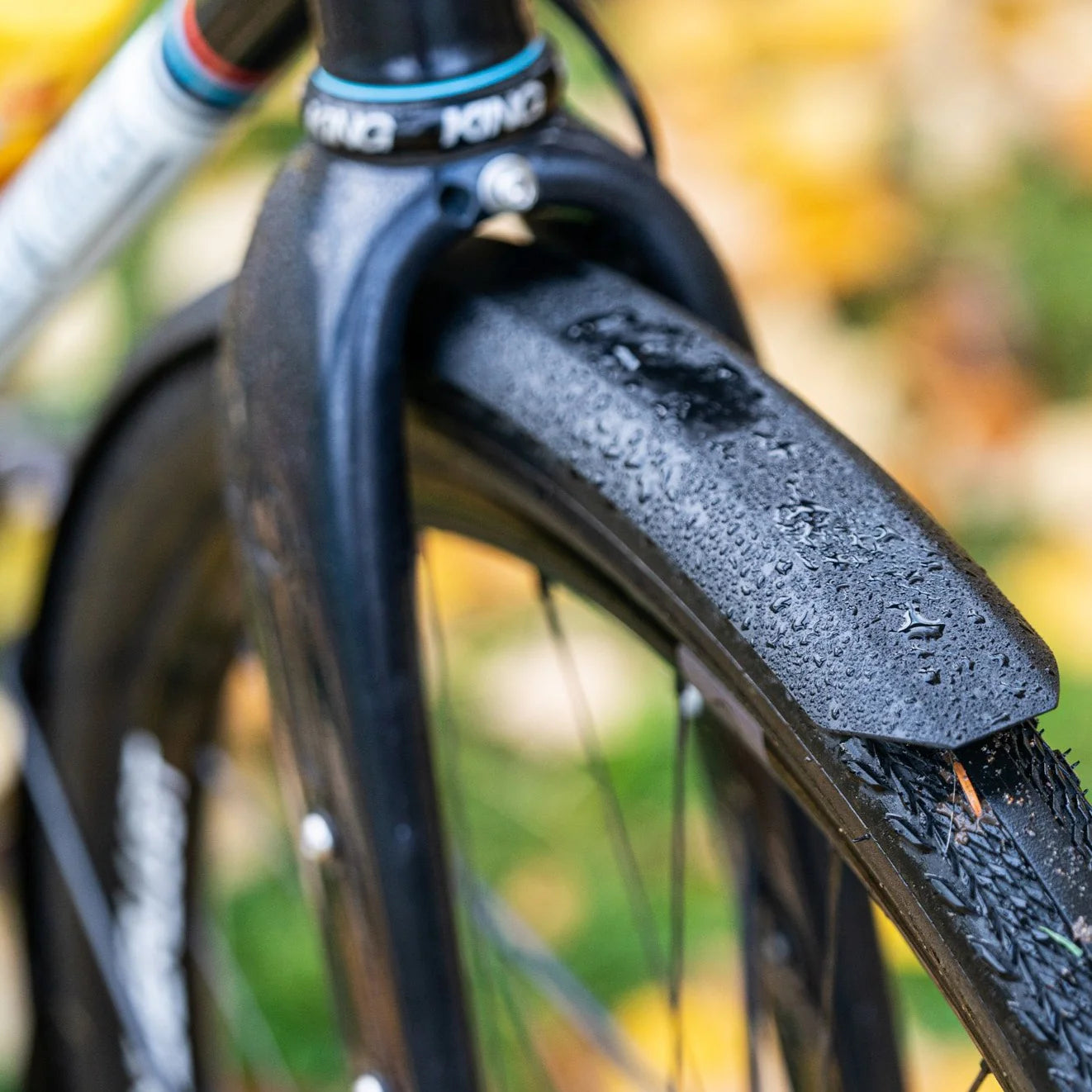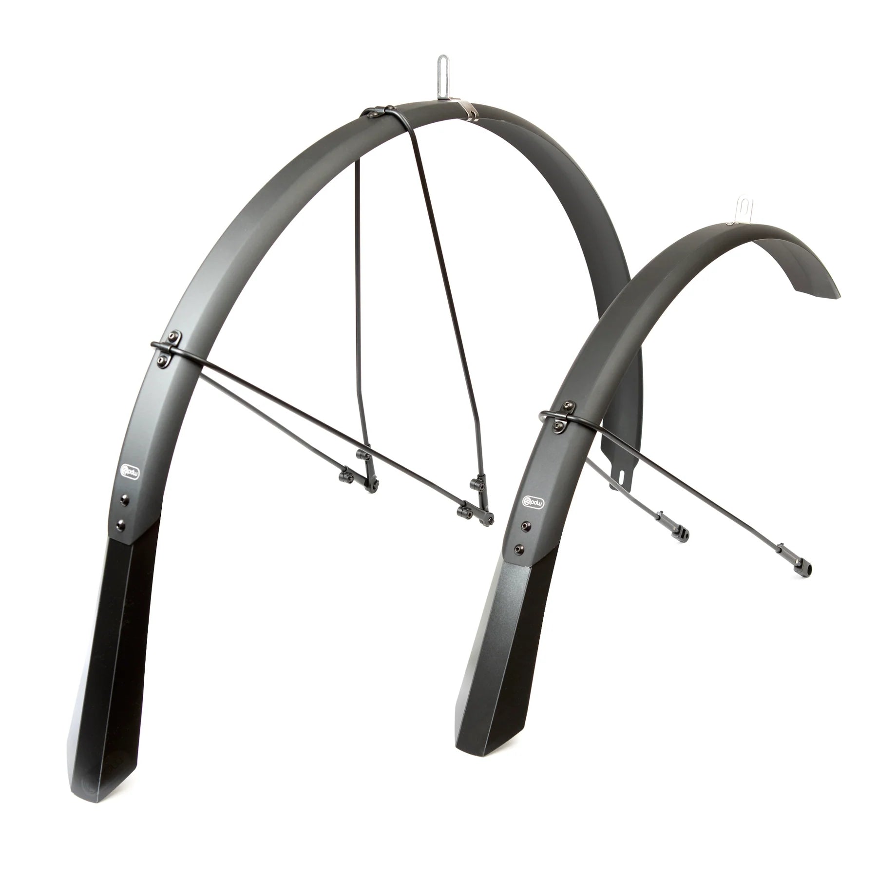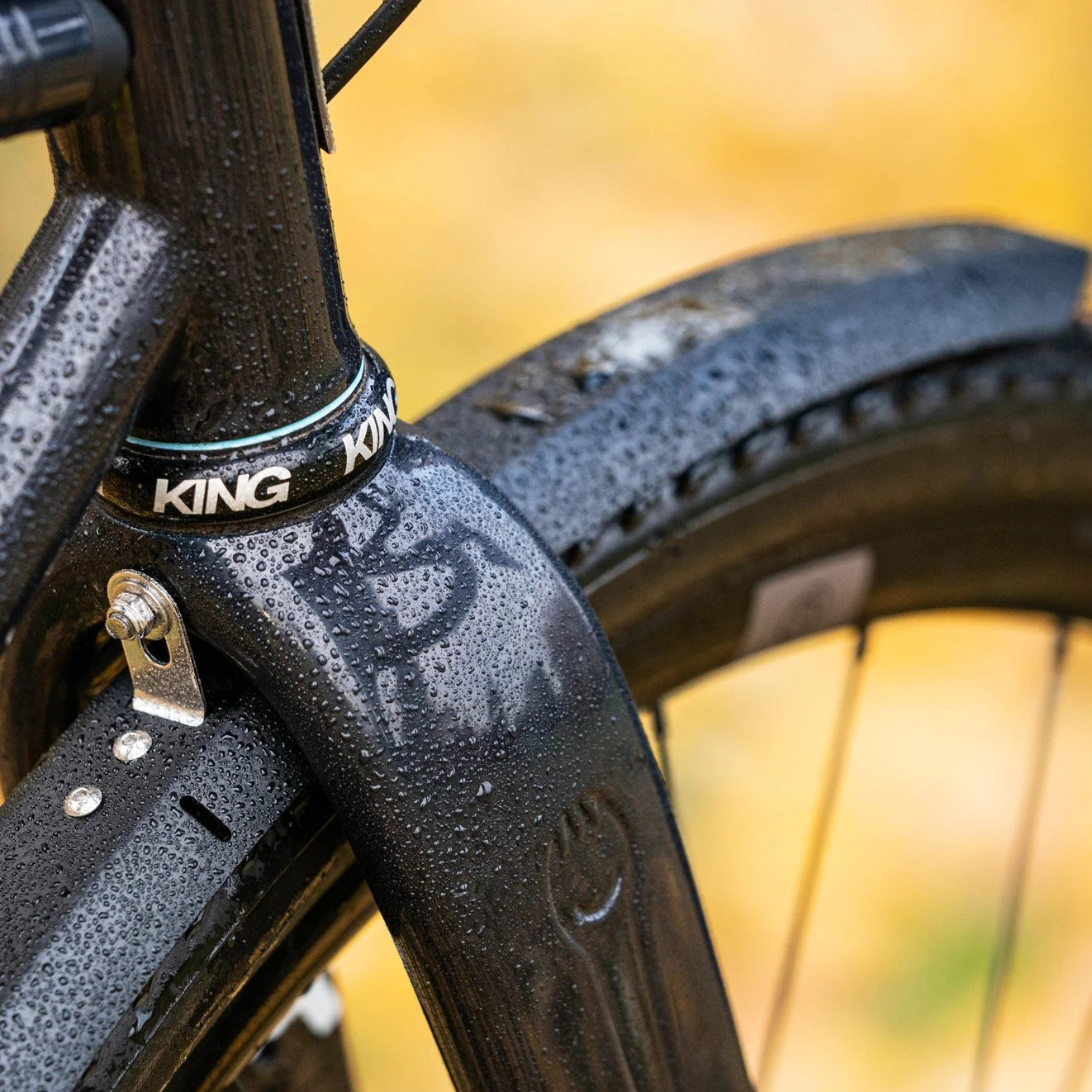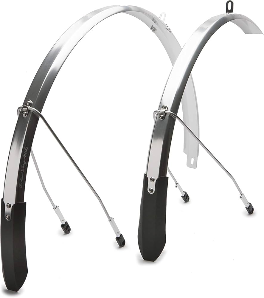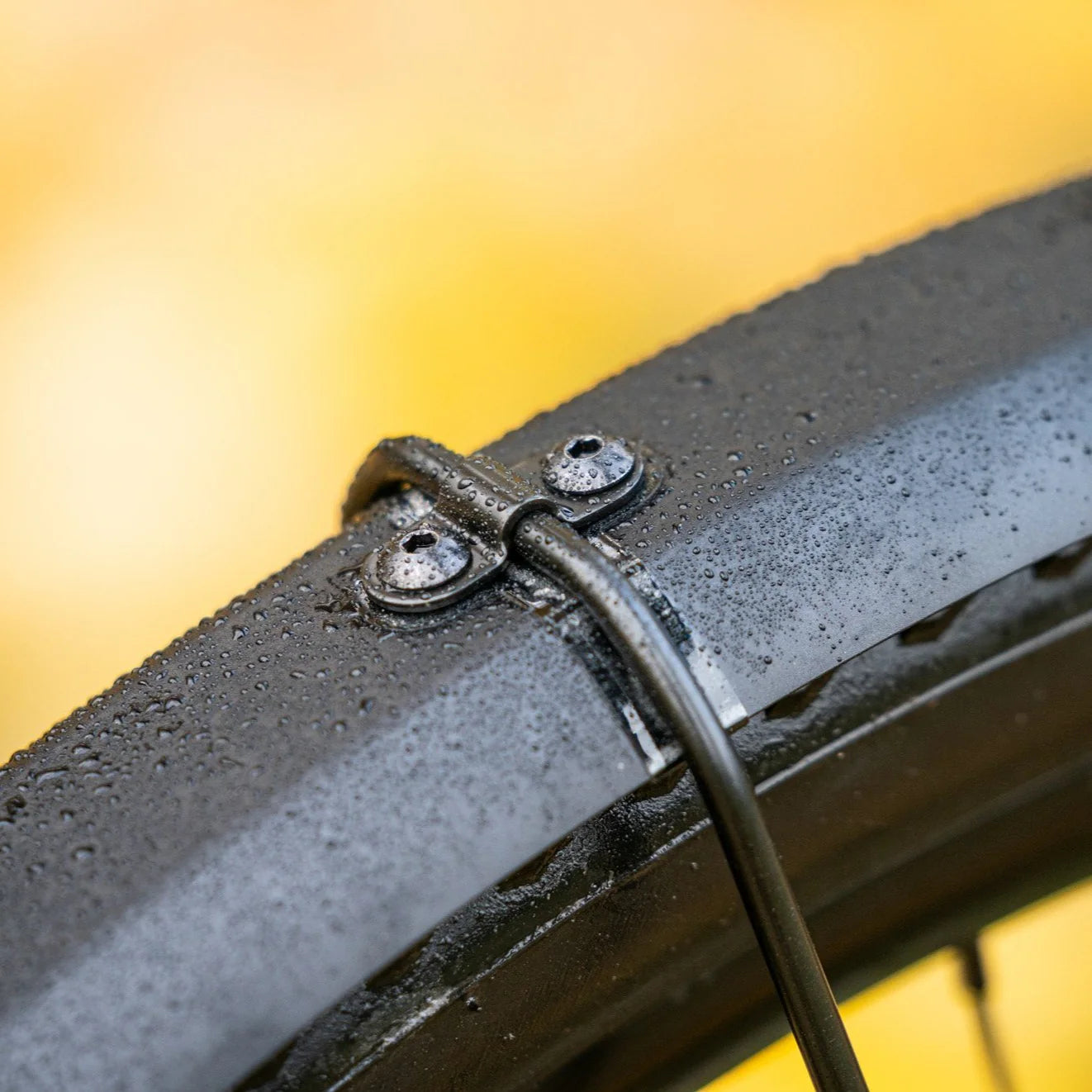 頑丈なアルマイト加工されたアルミニウム製で、レーザーエッチングされたグラフィックが施されています。700x55mmのフルメタルフェンダーは、最大700x47mmのタイヤが装着可能なクリアランスを持つ自転車に適合します。ダブルリアステーで確実にフェンダーを保持するため、大きなタイヤサイズでも安定性を増し、ガタつきを防ぎます。