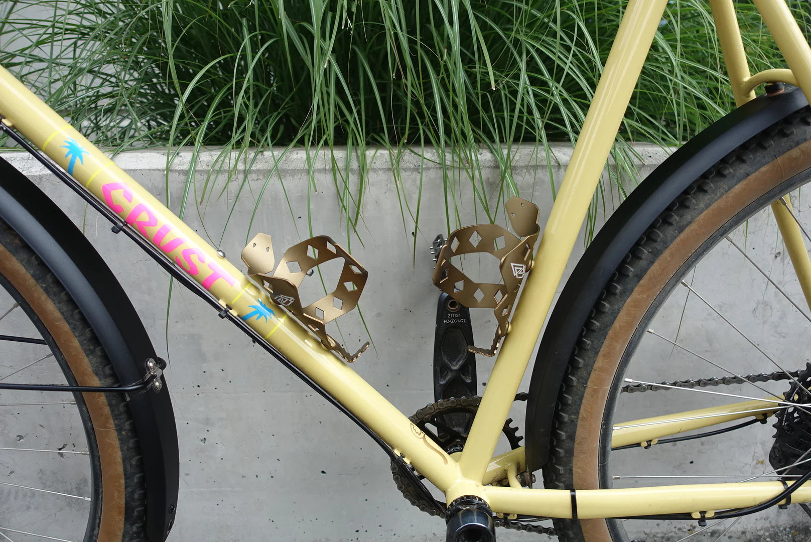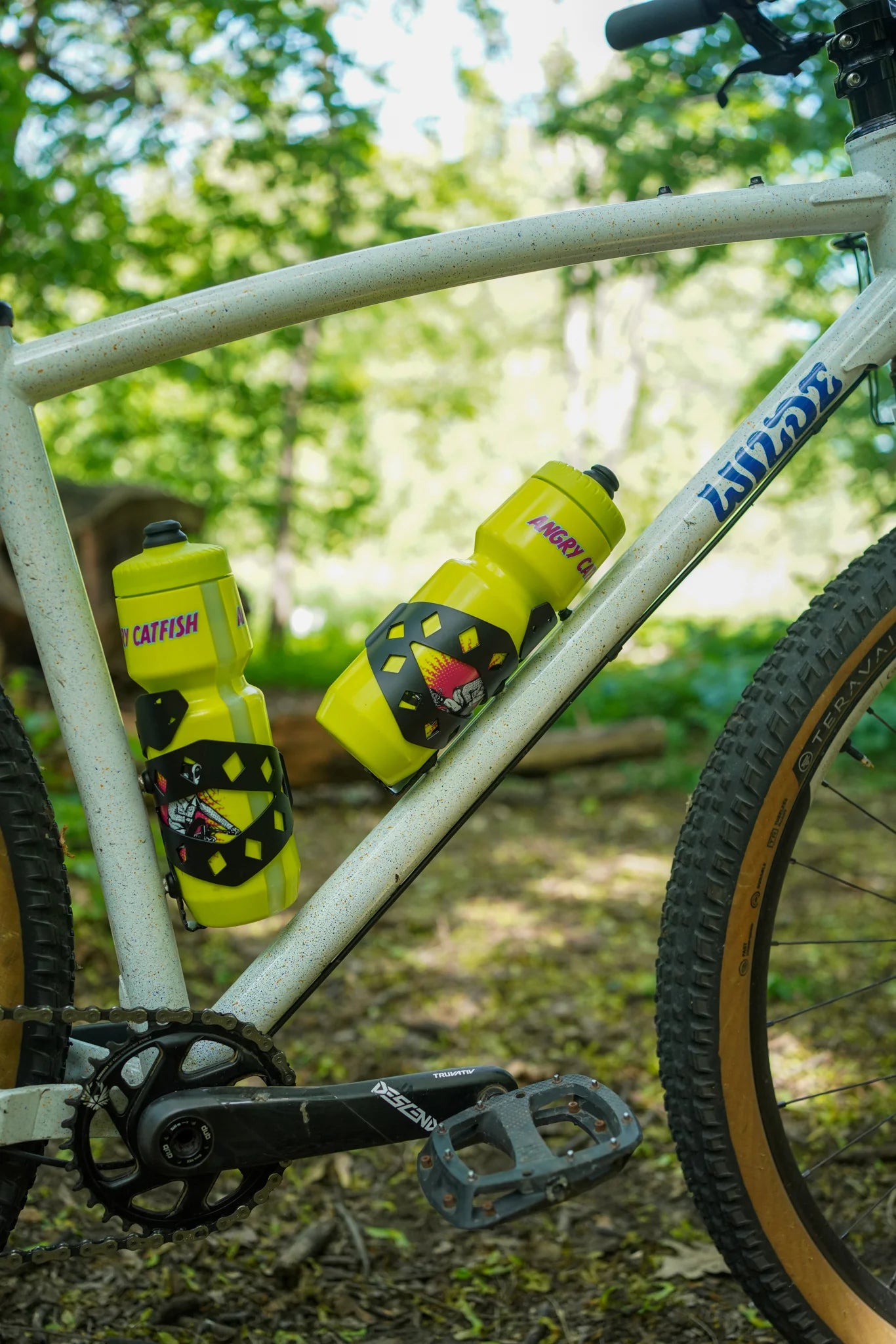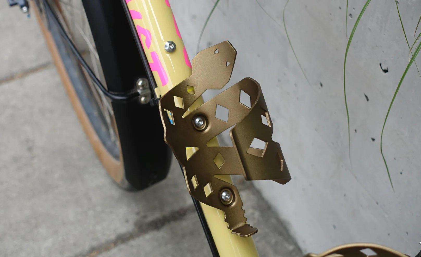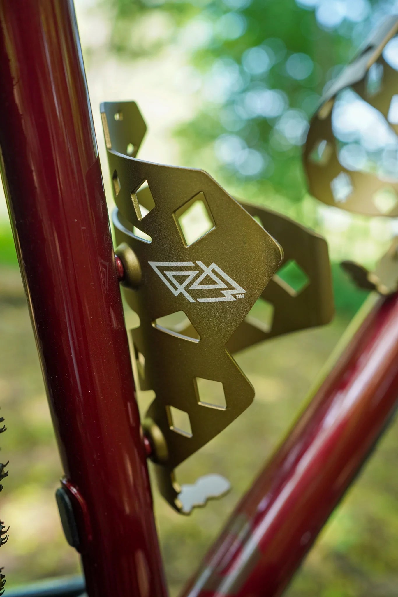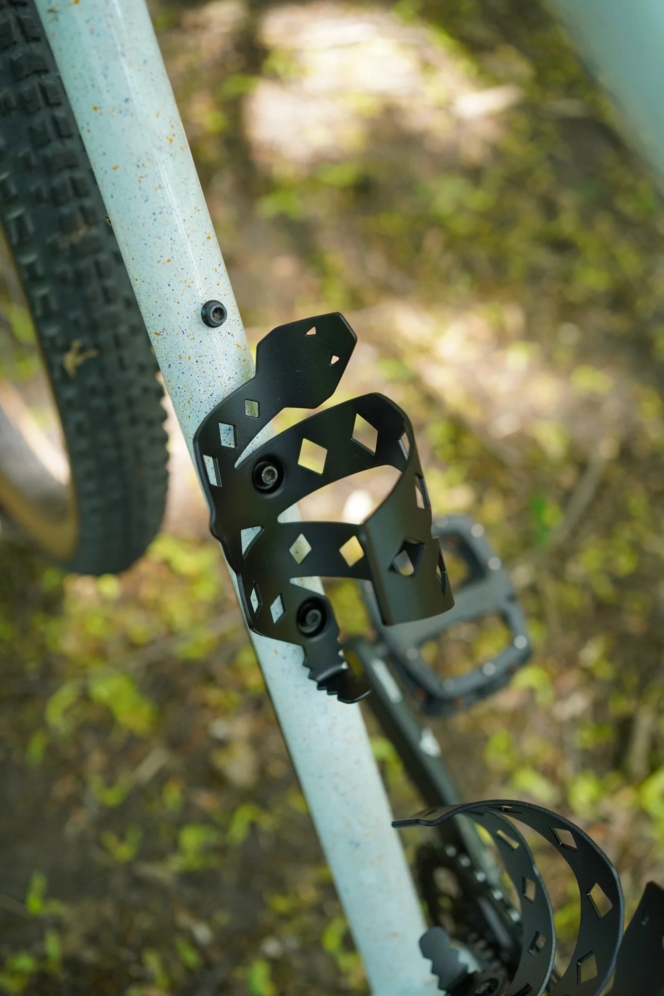 ラトルスネイク・ケージは軽量な5052アルミニウム合金の一枚板から作られます。そのしなやかなボディはボトルを保持し、ダイヤモンドのカットアウトはこのケージを軽量化しています。左右の両方からロードできるよう2種類が用意されており、ダウンチューブとシートチューブの両方に取り付ける場合でも、同じ側から両方のボトルにアクセスすることができます。